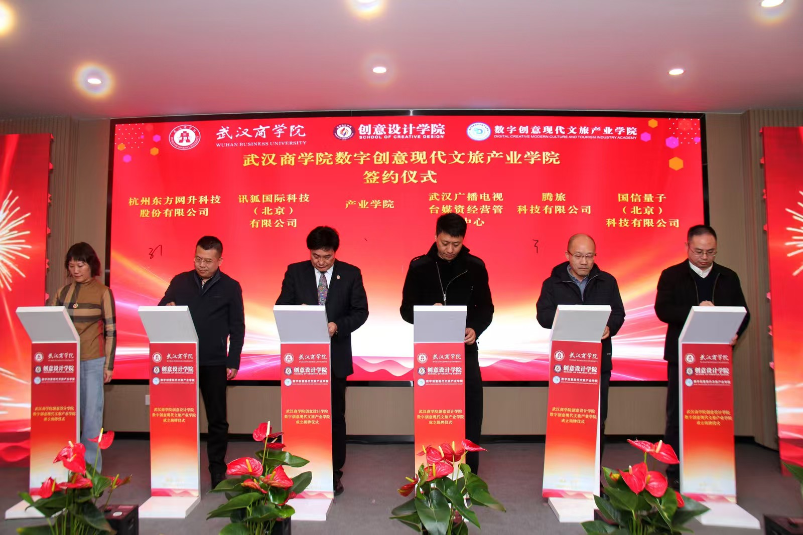 2025年12月25日,武汉商学院成立数字创意现代文旅产业学院。在揭牌仪式上,武汉商学院党委书记孟武康、校长彭瑜、教育部高等学校旅游管理类专业教学指导委员会副主任马勇、湖北省政府文史馆国学院院长刘玉堂、武汉市文化旅游集团副总经理周洁、武汉市文旅局一级调研员产业处处长彭胜、共同为学院揭牌。副校长陈磊主持本次仪式。