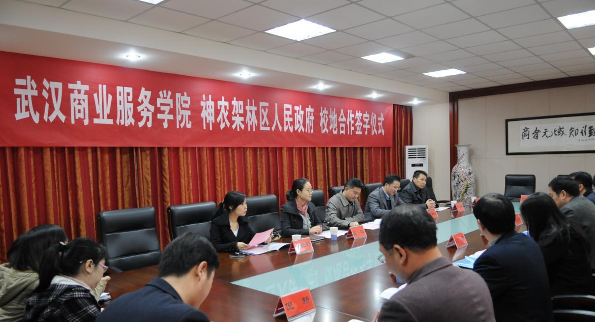 《长江日报》讯2012年11月23日报道,昨日,武汉商业服务学院与神农架林区签订协议,正式结为战略合作伙伴。双方将在旅游、酒店、餐饮等方面开展多种形式的校地合作,推动鄂西生态文化旅游圈建设。