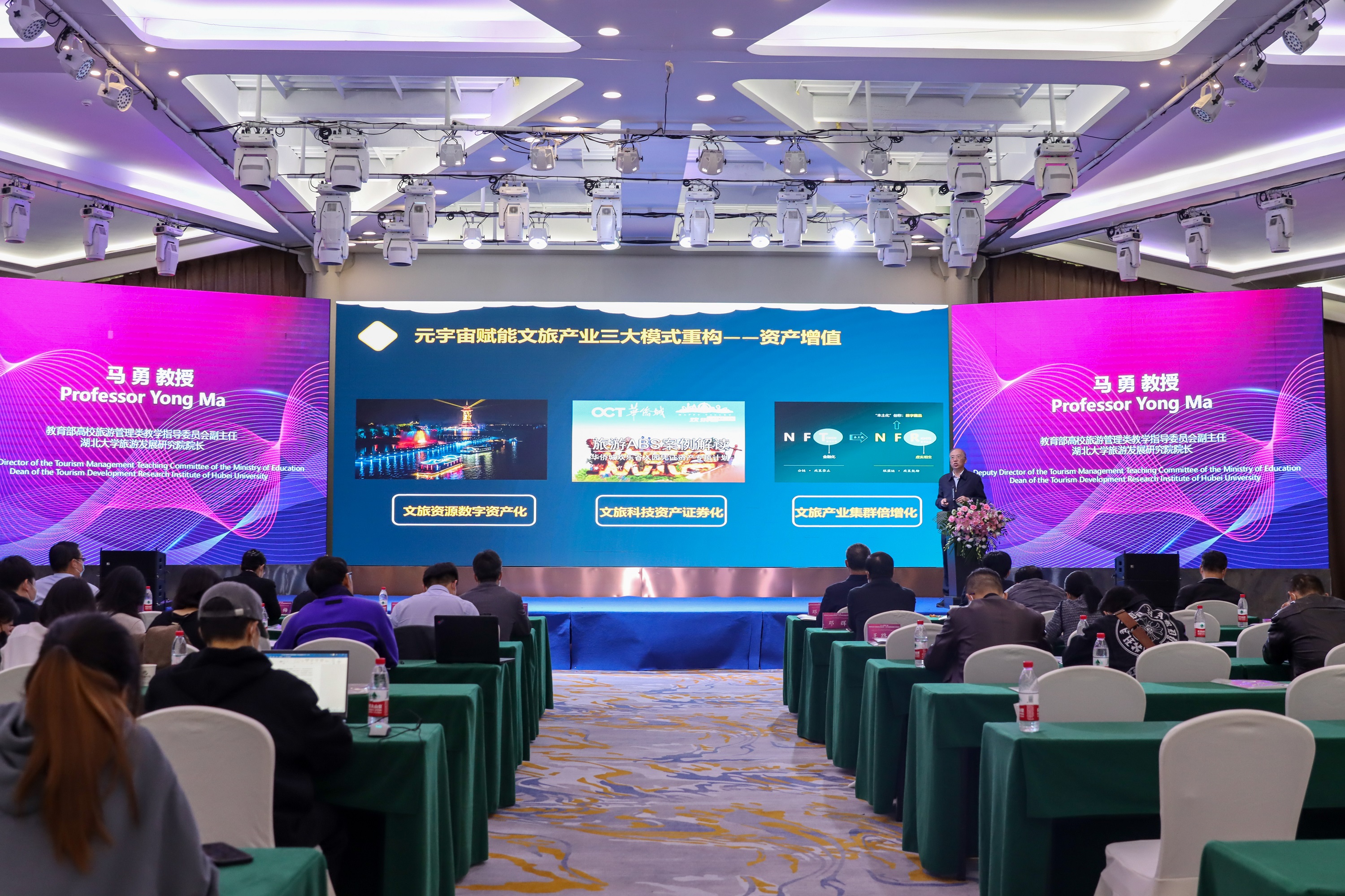 近年来炙手可热的“元宇宙”与旅游业有着怎样的联系,如何让“元宇宙”为文旅产业赋能?教育部高校旅游管理类教学指导委员会副主任、湖北大学旅游发展研究院院长马勇教授向大家分享他的见解。马勇针对“元宇宙赋能文旅产业三大价值解构”与“元宇宙赋能文旅产业三大模式重构”两大模块作了精辟论述。他提出当今时代,文旅产业对于元宇宙的运用已越来越多,例如AR/VR+文旅,5G+文旅,新基建+文旅等,在共融之中便产生资源、数据与成果的价值共享,达成共创价值的目标。同时,文旅产业的发展也推动学科专业性实践性的加强,吸引更多学生学习智慧文旅,助力旅游学科专业高质量发展。