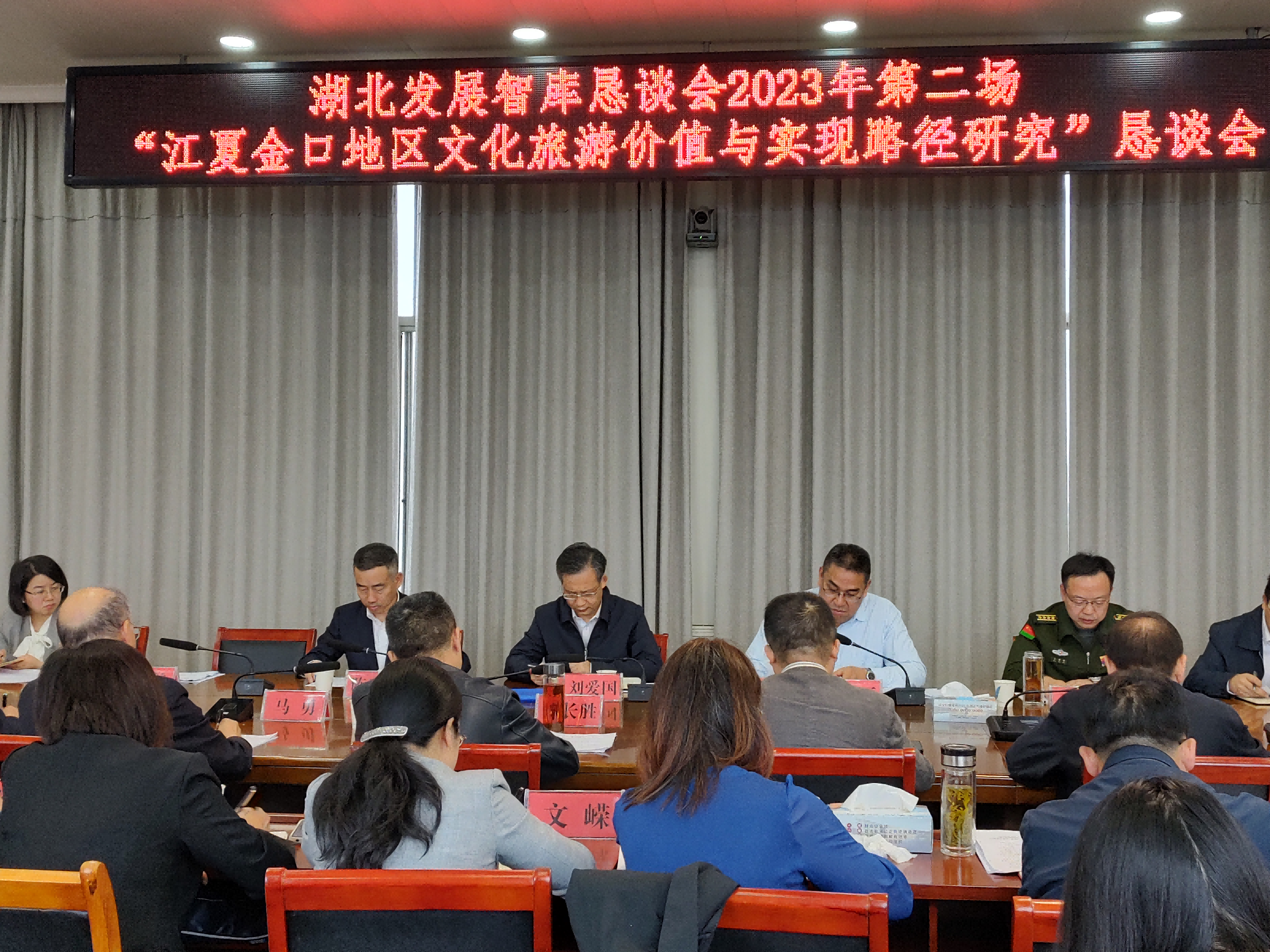 11月9日,由省社科联、武汉市委宣传部、武汉市社科联主办,湖北省文化遗产保护研会、武汉市江夏区等单位承办的湖北发展智库会2023年第二场——“江夏金口地区文化旅游价值与实现路径研究”恳谈会在武汉市江夏区举行。会议由武汉市宣传部副部长吴天勇主持,湖北省社科联主席刘爱国做了总结讲话。智库恳谈会围绕厚植文化根脉,进一步加快江夏区“三馆一基地”建设,把江夏金口建成世界级军事旅游文化目的地,政、学、商界智库力量汇智献策、共谋发展。