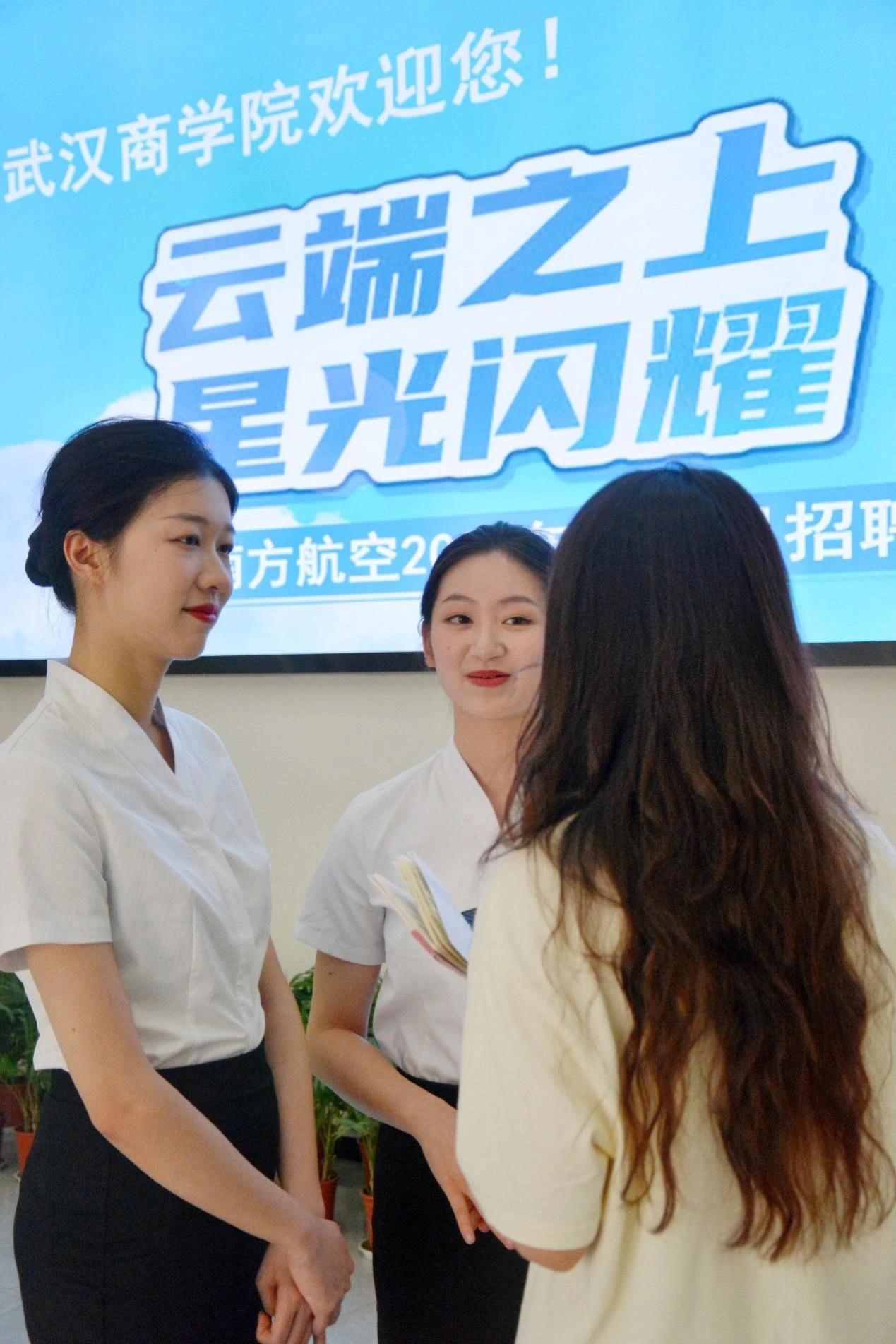 薛院长:我校航空服务与艺术管理专业是21年创办的,距今已经有三年的办学历史,我们特别注重学生实践能力的培养,拓展了很多跟校企合作的单位,比方说东航、南航,这些都是业内最好的公司。南航是三大航空公司之一,不仅是央企,也是机队规模最大的航空公司。南航面试点在武汉选择我们学校,是对学校的认可,也是对我们办学条件的认可。湖北省内只有三所本科层次的航空服务与艺术管理专业,我们武汉商学院是武汉市唯一的这类本科层次的专业,而南航作为一个央企,招聘要求学历本科起步,我们办学条件和实训条件都能达到他们的要求,所以南航愿意跟我们学校达成一个深度的校企合作,不仅仅是这次面试,南航还作为新型的教学合作基地进行研学活动。