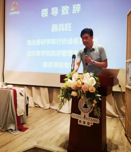 相聚是缘,齐聚是缘,同道更是缘。作为协办单位贵缘堂·湖北儒释道文化发展有限公司创始人谭文艺热情洋溢的欢迎词,研学指导师同仁们倍感亲切。湖北省研学旅行协会名誉会长、武汉商学院旅游管理学院院长、国务院津贴专家薛兵旺教授在公益培训活动上致辞,肯定了协会研学导师专委会成立以来,开展了卓有成效极具影响力的系列主题活动,明确指出研学指导师的培养目标,对协会研学导师专委会未来的工作提出了更高要求。